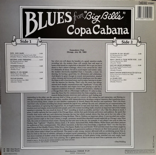 Muddy Waters, Buddy Guy, Howlin' Wolf, Willie Dixon, Sonny Boy Williamson - Blues From "Big Bill's" Copa Cabana (LP, Album, RE) France 1984 VG+