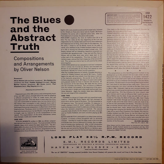 Oliver Nelson, Bill Evans, Eric Dolphy, Paul Chambers , Freddie Hubbard - The Blues And The Abstract Truth - UK LP 1961 - VG+