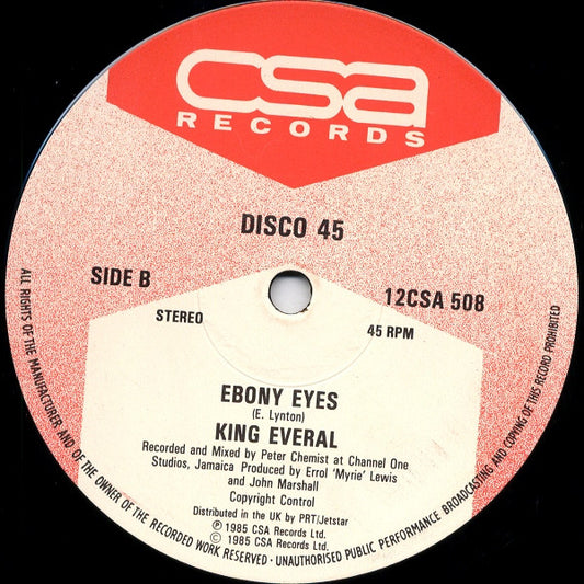 Pad Anthony / King Everald - Carrot And Onion / Ebony Eyes (12") UK 1985 NM or M-