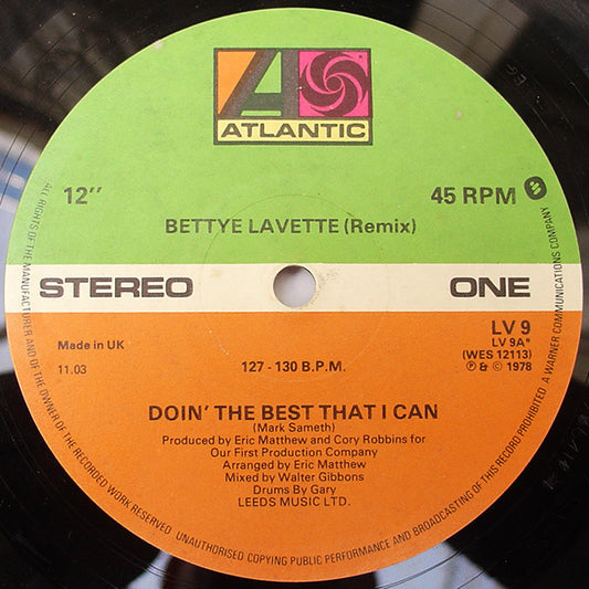 Bettye Lavette - Doin' The Best That I Can (Remix) (12", Single) UK 1978 VG