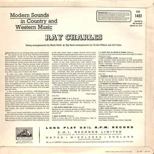 Ray Charles - Modern Sounds In Country And Western Music (LP, Album, RE) UK VG+