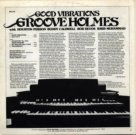 Richard "Groove" Holmes - Good Vibrations (LP, Album) US 1980 VG+