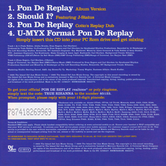 Rihanna - Pon De Replay (CD, Single, Enh) UK 2005 VG+