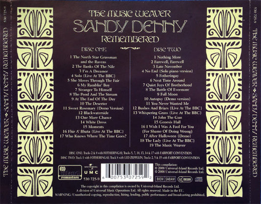 Sandy Denny - The Music Weaver (Sandy Denny Remembered) (2xCD, Comp) Europe 2008 VG+