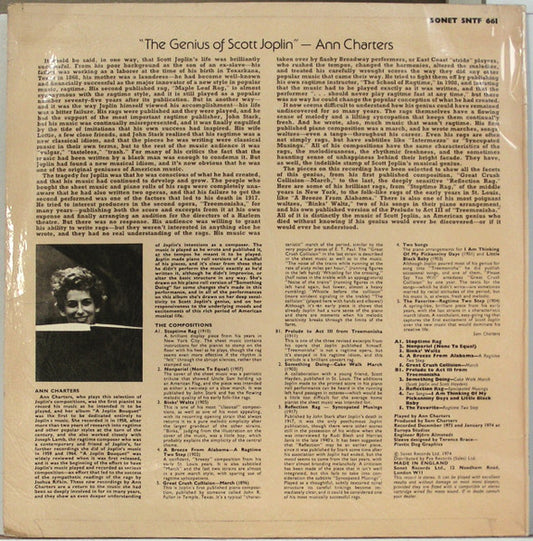 Scott Joplin Played By Ann Charters - The Genius Of Scott Joplin - UK LP 0 - NM or M-