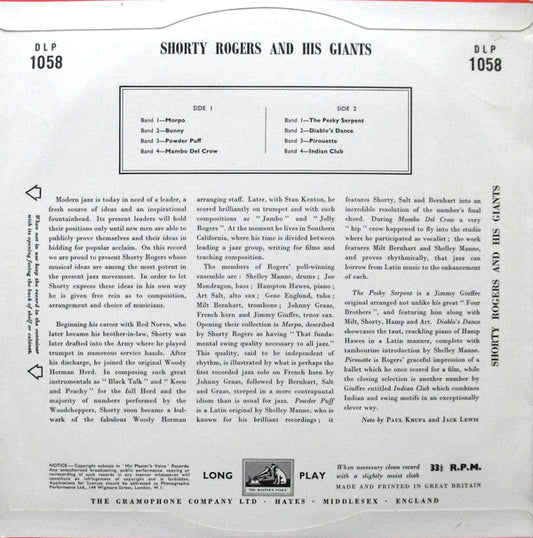 Shorty Rogers And His Giants - Shorty Rogers And His Giants (10", Album) UK 1954 VG+
