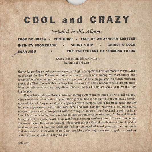 Shorty Rogers And His Orchestra Featuring The Giants - Cool And Crazy - US 2x7" 1953 - VG+