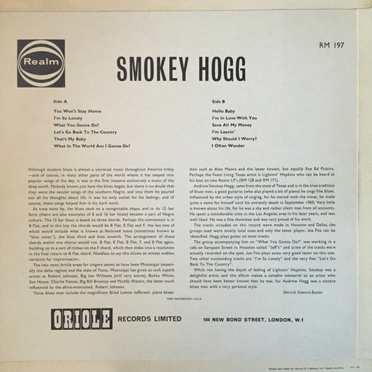 Smokey Hogg - I'm So Lonely (LP) UK 1964 VG+