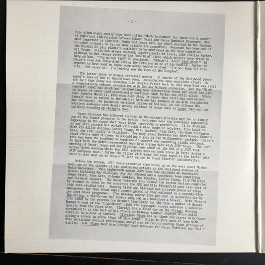Sonny Stitt / Oscar Peterson - Sittin' In - UK 2xLP - VG+