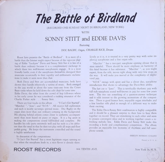 Sonny Stitt - Eddie "Lockjaw" Davis - The Battle Of Birdland (LP, Album, Mono) US 1955 VG