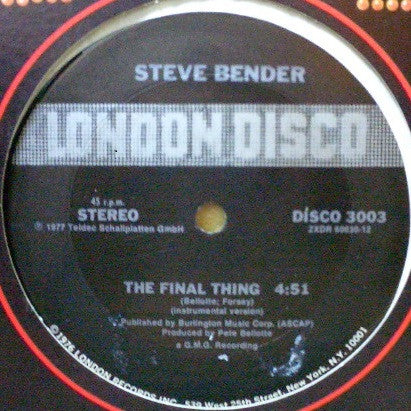 Steve Bender - The Final Thing (12") US 1977 VG+