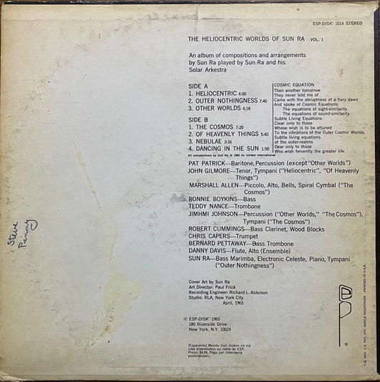 Sun Ra - The Heliocentric Worlds Of Sun Ra, Vol. I (LP, Album, RP) US 1968 VG+