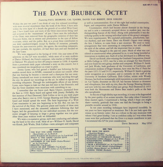 The Dave Brubeck Octet - Dave Brubeck Octet - US LP 1984 - NM or M-