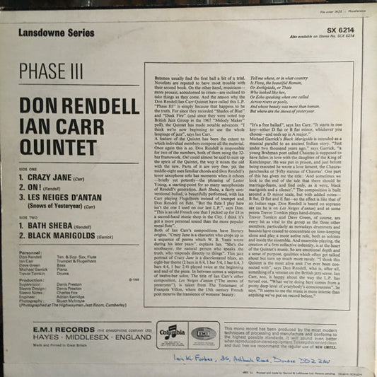 The Don Rendell / Ian Carr Quintet - Phase III - UK LP 1968 - VG