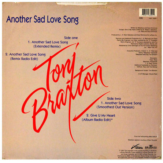 Toni Braxton - Another Sad Love Song (12") UK 1993 VG+