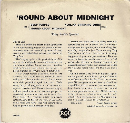 Tony Scott's Quartet* - The Touch Of Tony Scott ('Round About Midnight) - Germany 7" 1956 - VG+