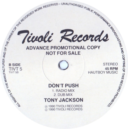Tony Jackson - Don't Push (12", Advance, Promo) UK 1990 VG+
