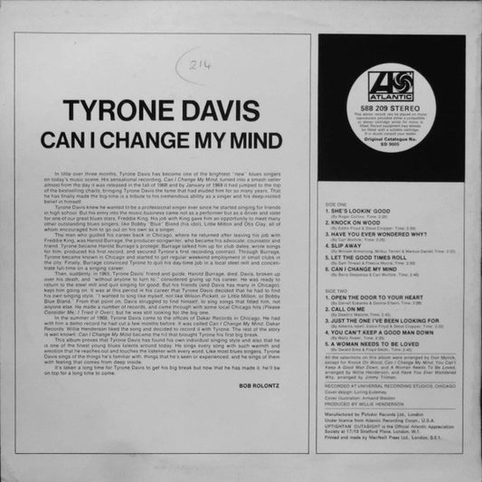 Tyrone Davis - Can I Change My Mind (LP, Album) UK 1970 VG+