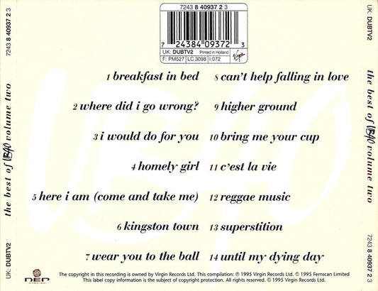 UB40 - The Best Of UB40 - Volume Two (CD, Comp) UK & Europe 1995 VG+