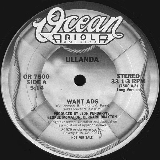 Ullanda McCullough - Want Ads (12", Promo) US 1979 VG+