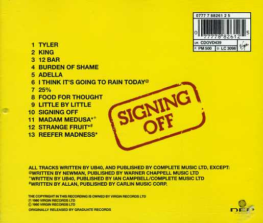 UB40 - Signing Off (CD, Album, RE) UK & Europe VG+