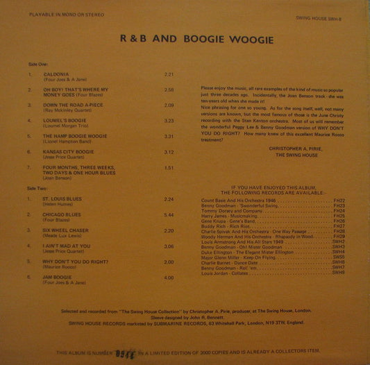 Various - R & B And Boogie Woogie (LP, Comp, Ltd) UK 1979 NM or M-