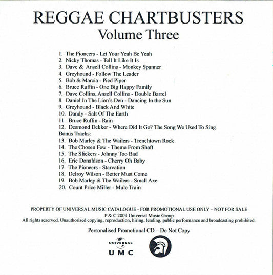 Various - Reggae Chartbusters (Volume Three) - UK & Europe CDr 2009 - VG+