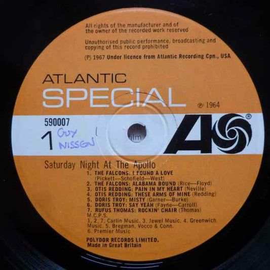 Various - Saturday Night At The Apollo (LP, Comp, RE) UK 1967 VG+
