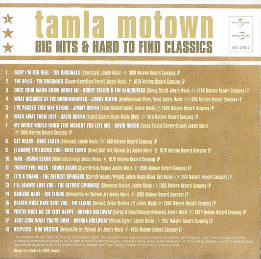 Various - Tamla Motown Big Hits & Hard To Find Classics (Volume One) (CD, Comp, RE, Dis) UK 2000 VG+