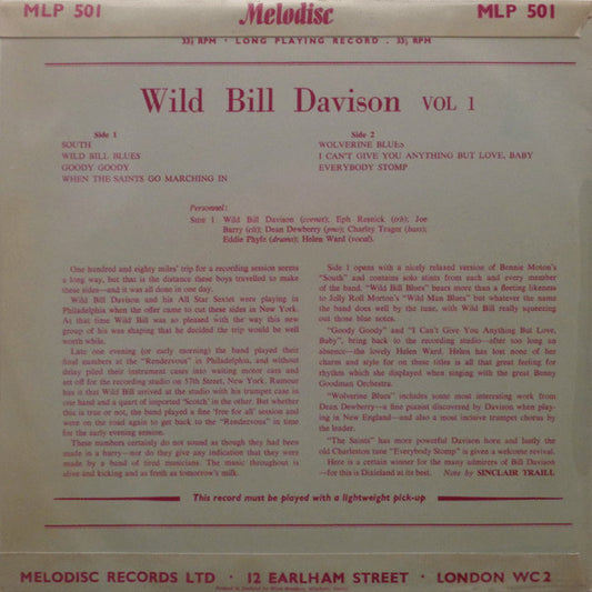 Wild Bill Davison - Wild Bill Davison Vol 1 (10", Mono) UK 1954 VG+