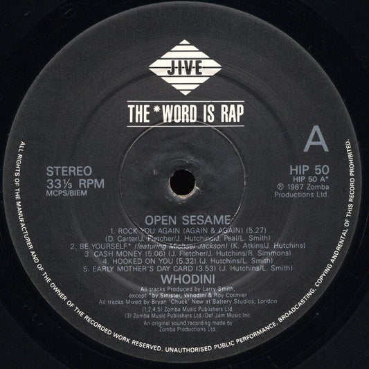 Whodini - Open Sesame (LP, Album) UK 1987 VG+