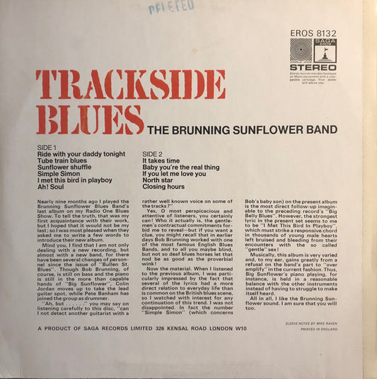 Brunning Sunflower Blues Band - Trackside Blues (LP, Album) UK 1969 VG+