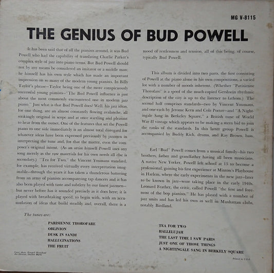 Bud Powell - The Genius Of Bud Powell (LP, Album, RP) US 0 VG+
