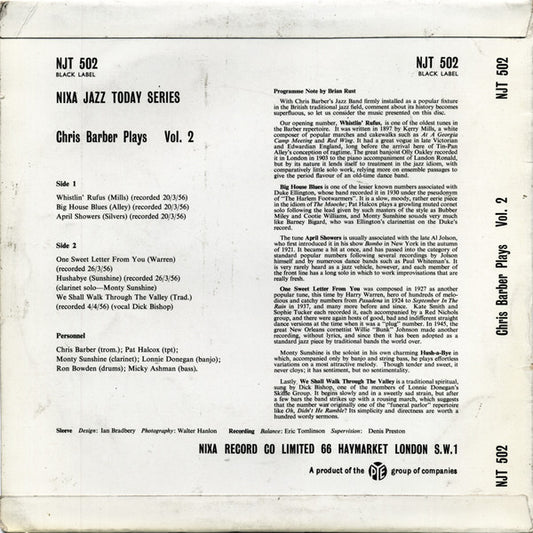 Chris Barber's Jazz Band - Chris Barber Plays Vol. 2 (10", RP) UK VG+