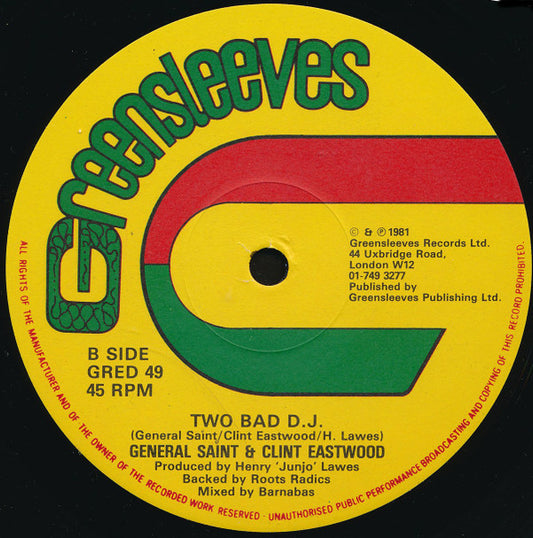 Clint Eastwood And General Saint - Tribute To General Echo / Two Bad D.J. (12") UK 1981 VG+