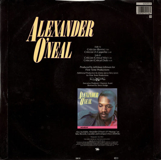 Alexander O'Neal - Criticize (Special 12" Mixes) (12", Single) UK 1987 VG+