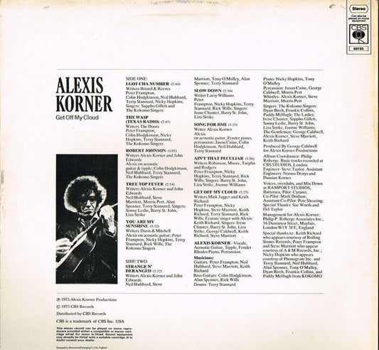 Alexis Korner - Get Off Of My Cloud (LP) UK 1975 NM or M-