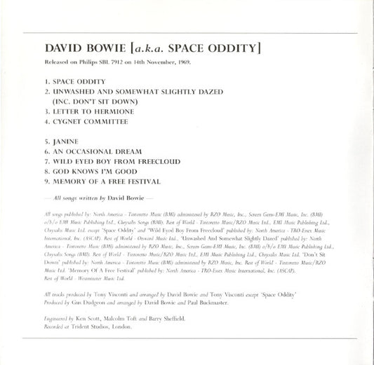 David Bowie - David Bowie (CD, Album, RE, RM) Europe 2015 VG+