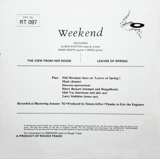 Weekend - The View From Her Room Plus Leaves Of Spring - UK 12" 1982 - NM or M-