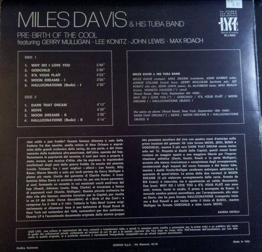 Miles Davis & His Tuba Band - Pre-Birth Of The Cool - Italy LP 1974 - VG+