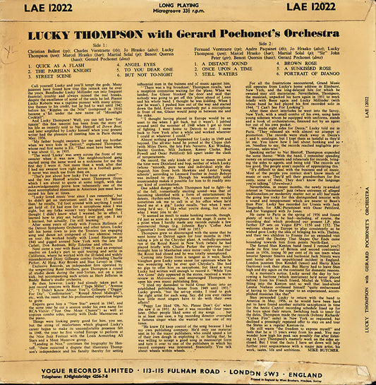 Lucky Thompson With Gérard Pochonet And His Orchestra Featuring Martial Solal - Lucky Thompson With Gerard Pochonet's Orchestra - UK LP 1956 - VG+