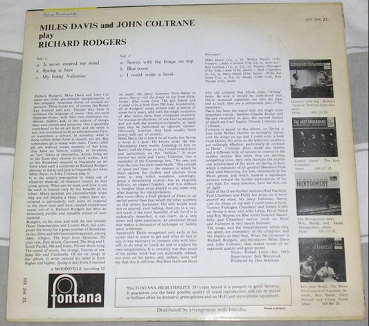 Miles Davis + John Coltrane - Play Richard Rodgers - Netherlands LP 1963 - VG+