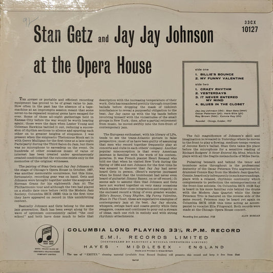 Stan Getz And J.J. Johnson - At The Opera House (LP, Album) UK 1958 VG+