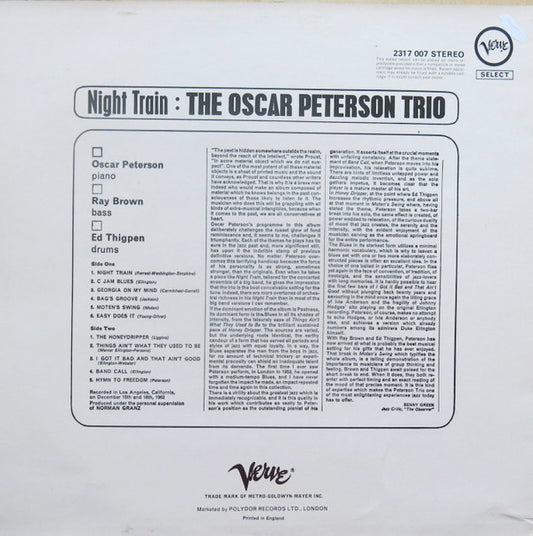 The Oscar Peterson Trio - Night Train (LP, Album, RE) UK 0 VG+