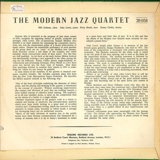 The Modern Jazz Quartet - Modern Jazz Quartet (10", Mono) UK 1955 VG+