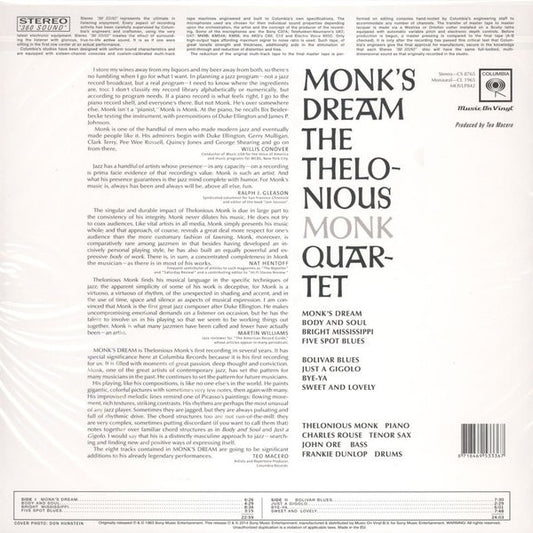 The Thelonious Monk Quartet - Monk's Dream (LP, Album, RE, 180) Europe 2014 M
