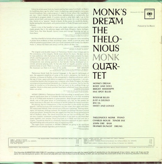 The Thelonious Monk Quartet - Monk's Dream (LP, Album, Mono) US 1963 VG+
