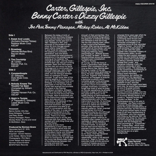Benny Carter & Dizzy Gillespie - Carter, Gillespie, Inc. (LP, Album) UK 1976 VG+