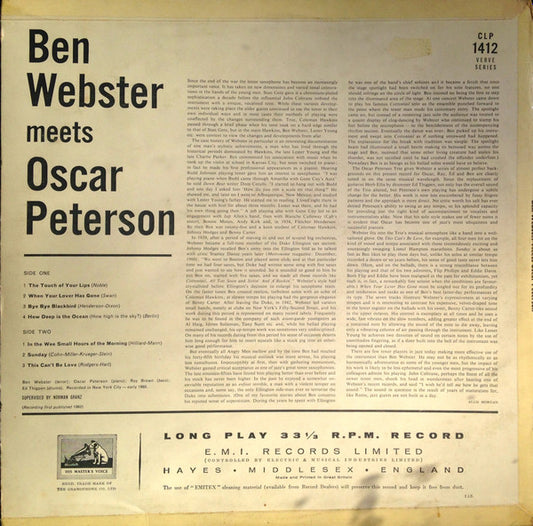 Ben Webster Meets Oscar Peterson - Ben Webster Meets Oscar Peterson (LP, Album, Mono) UK 1961 VG