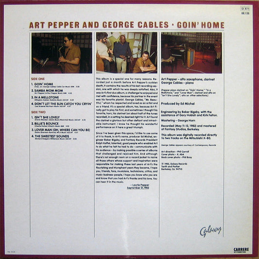 Art Pepper / George Cables - Goin' Home - France LP 1982 - NM or M-